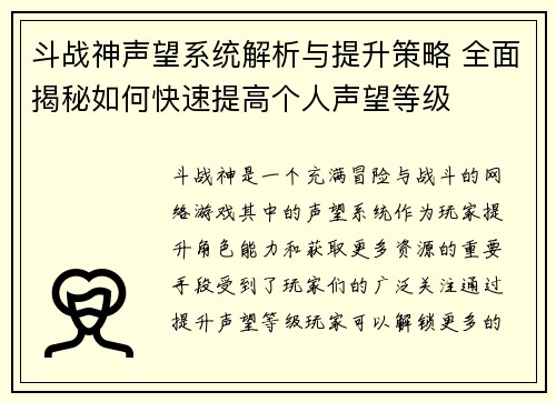 文章摘要:在乱世的汹涌波涛中,有一位无名君王冉冉升起,犹如一颗破晓的晨星,突破重重困难,掌控了命运与权力。这位君王出身贫寒,未曾享有贵族的光环与庇护,但凭借无与伦比的智慧、超凡的胆略和深刻的谋略,他凭空创造了属于自己的王朝,成为了那个动荡时代的统治者。本篇文章将从四个方面阐述这位无名君王如何在乱世中...